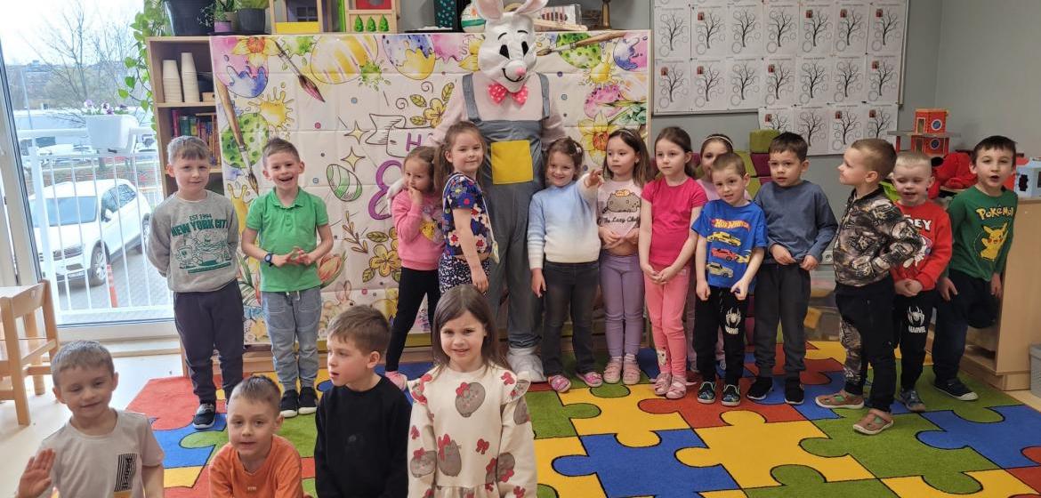 Na zakończenie spotkała nas wyjątkowa niespodzianka – odwiedził nas Zajączek Wielkanocny, który obdarował każde dziecko upominkiem 🐰🎁