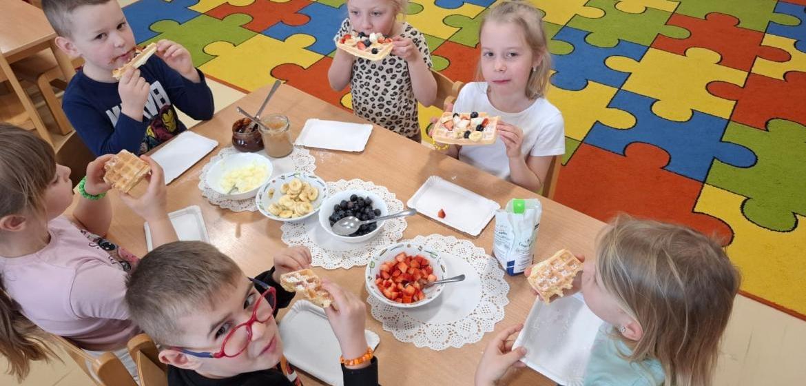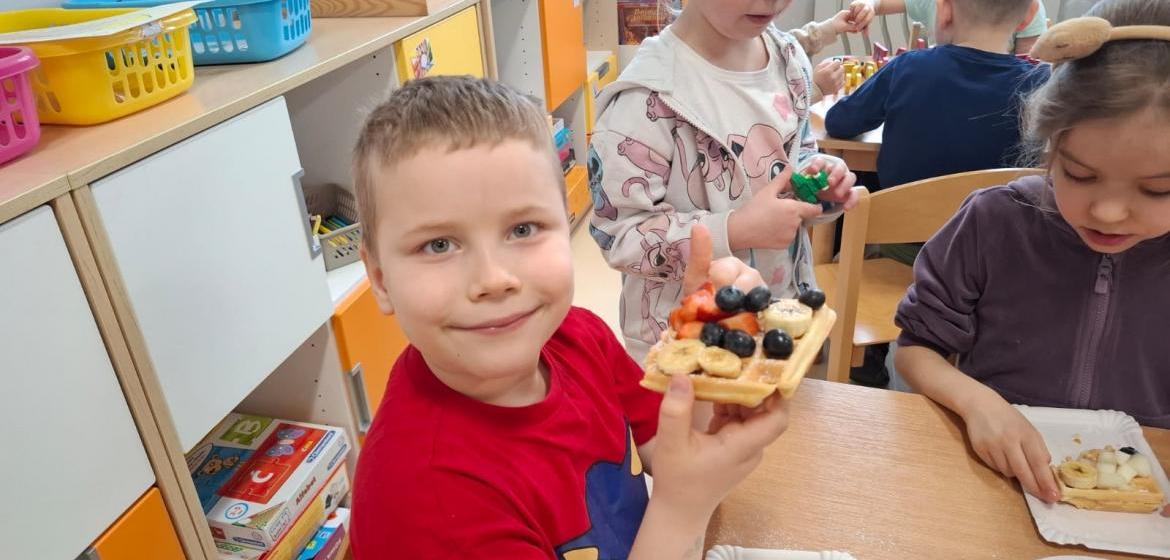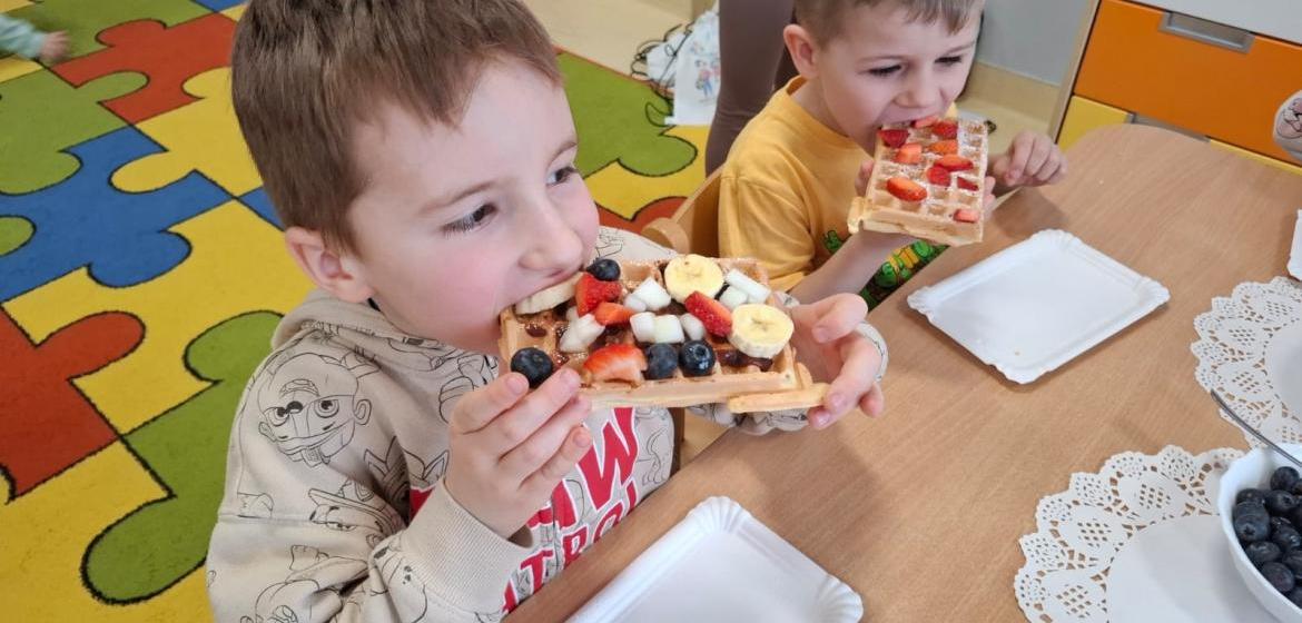 Dziś w naszej sali unosił się zapach… szczęścia! A to wszystko za sprawą pysznych, chrupiących gofrów 🧇 przygotowanych z wielkim apetytem i jeszcze większą radością.