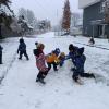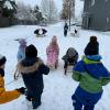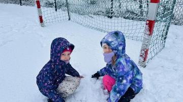 Dzieci tak korzystały z pierwszego śniegu — lepienie bałwanów, jazda na sankach, śnieżne zabawy i mnóstwo radości.