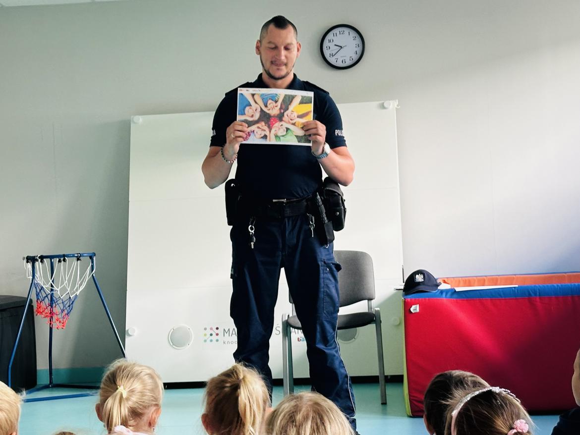 Dzisiaj nasze przedszkole odwiedził Pan Policjant. Nauczył nas jak rozpoznawać przemoc i agresję rówieśniczą oraz w jaki sposób na nią reagować. Dzisiaj już wiemy i rozumiemy, że mamy prawo za każdym razem powiedzieć STOP ⛔️ i wiemy do kogo zwrócić się o pomoc.