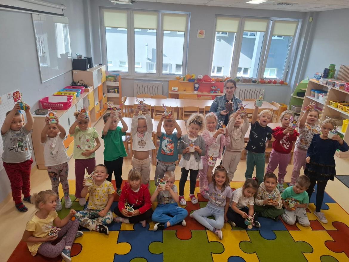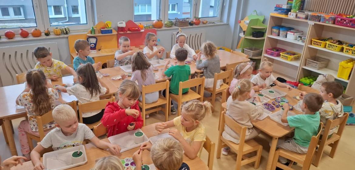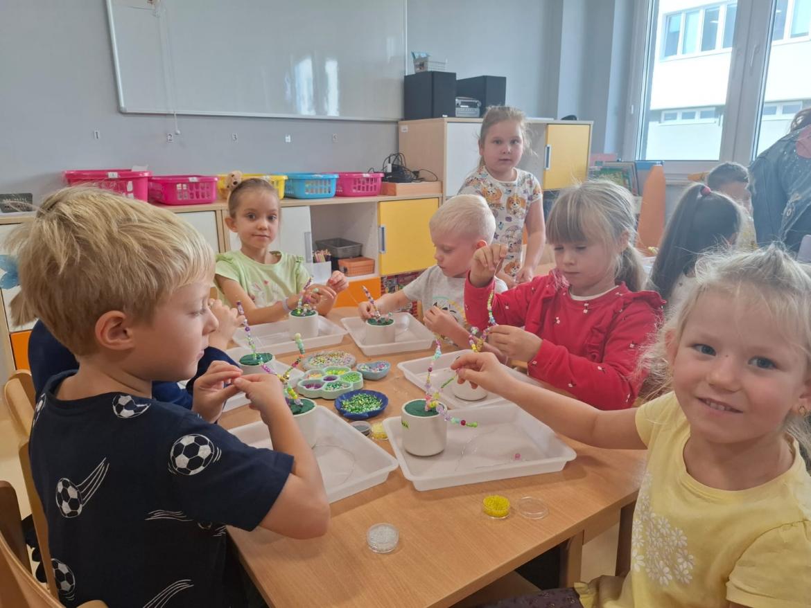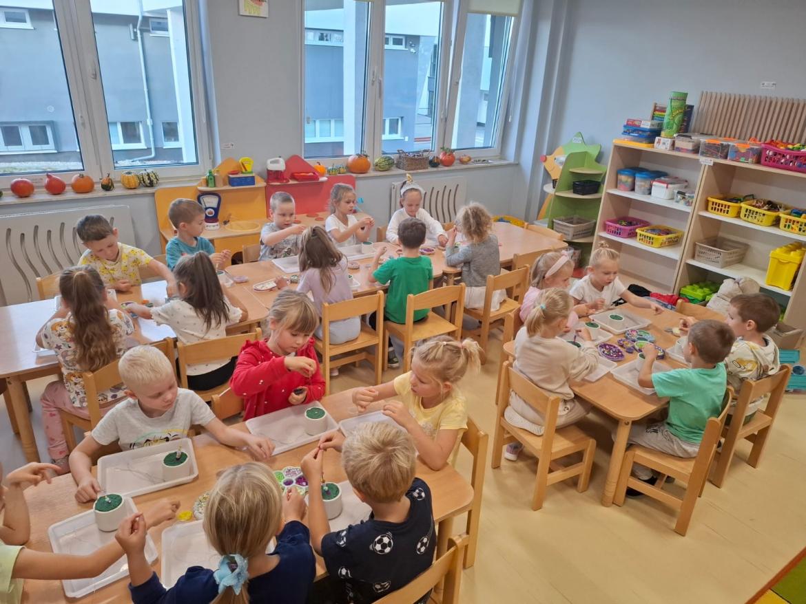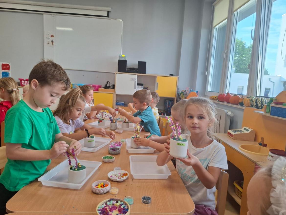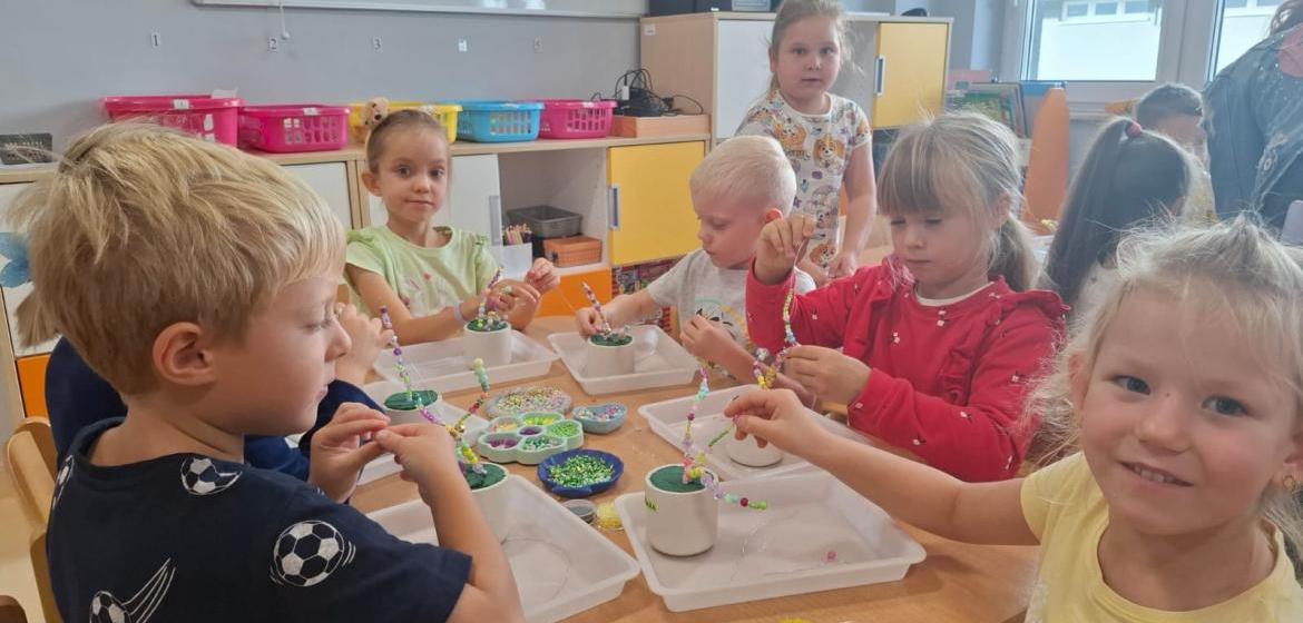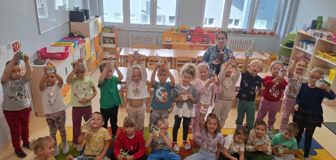 Dziś dzieci z grupy "Jeżyki" rozwijały przede wszystkim motorykę małą, poprawiając precyzję ruchów dłoni i palców, oraz koordynację wzrokowo - ruchową. Koncentracja i cierpliwość dzięki warsztatom - "Kreatywne drzewo".