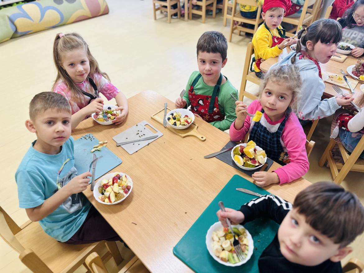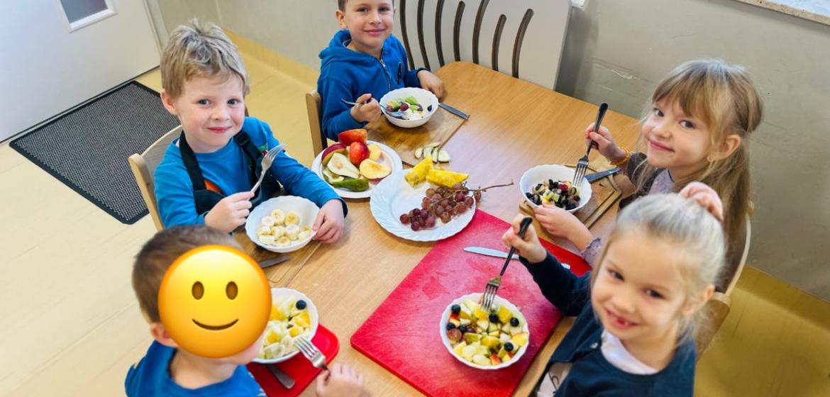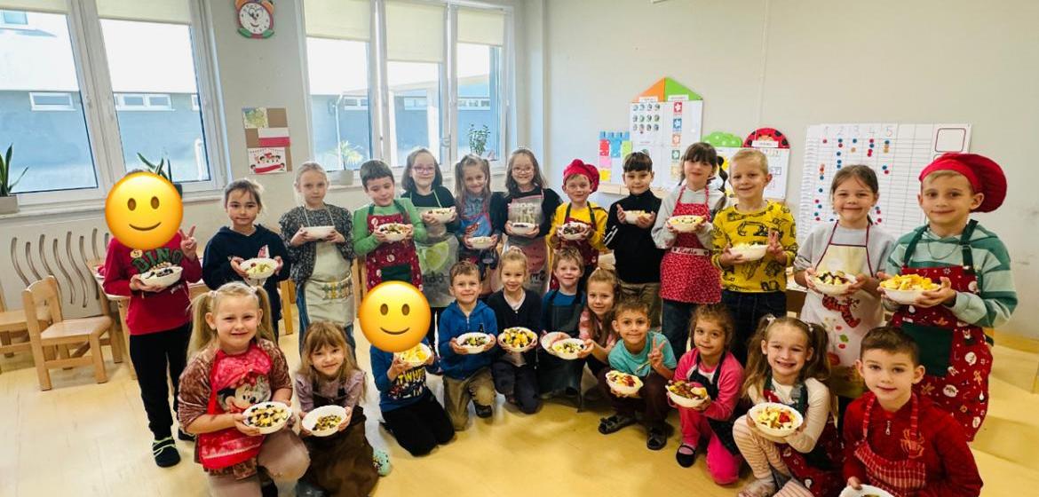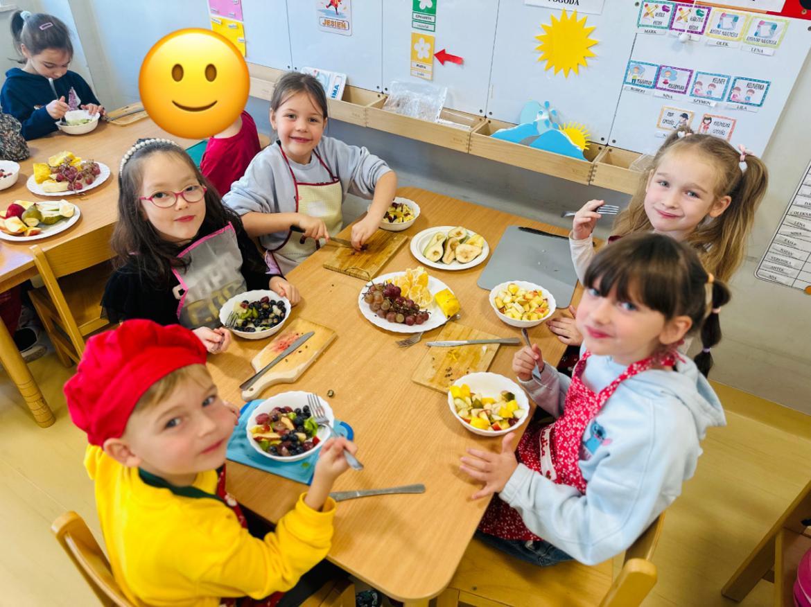 Data i godzina wydarzenia pt., 07/11/2025 Rok szkolny 2024-2025 Z okazji Dnia Zdrowego Jedzenia nasze Liski przygotowały pyszną sałatkę owocową. Dzieci z zaangażowaniem kroiły owoce, mieszały składniki, a na końcu ze smakiem zjadły swoje kolorowe i zdrowe przysmaki! 🍎🍌🍓 Galeria × Poprzednie Dalej