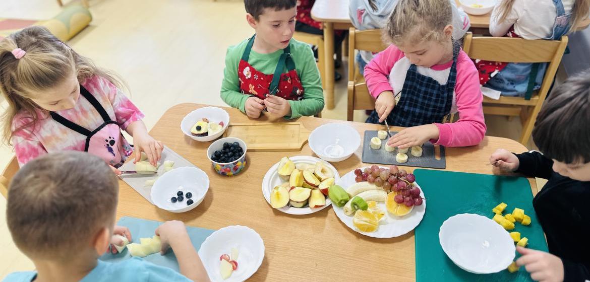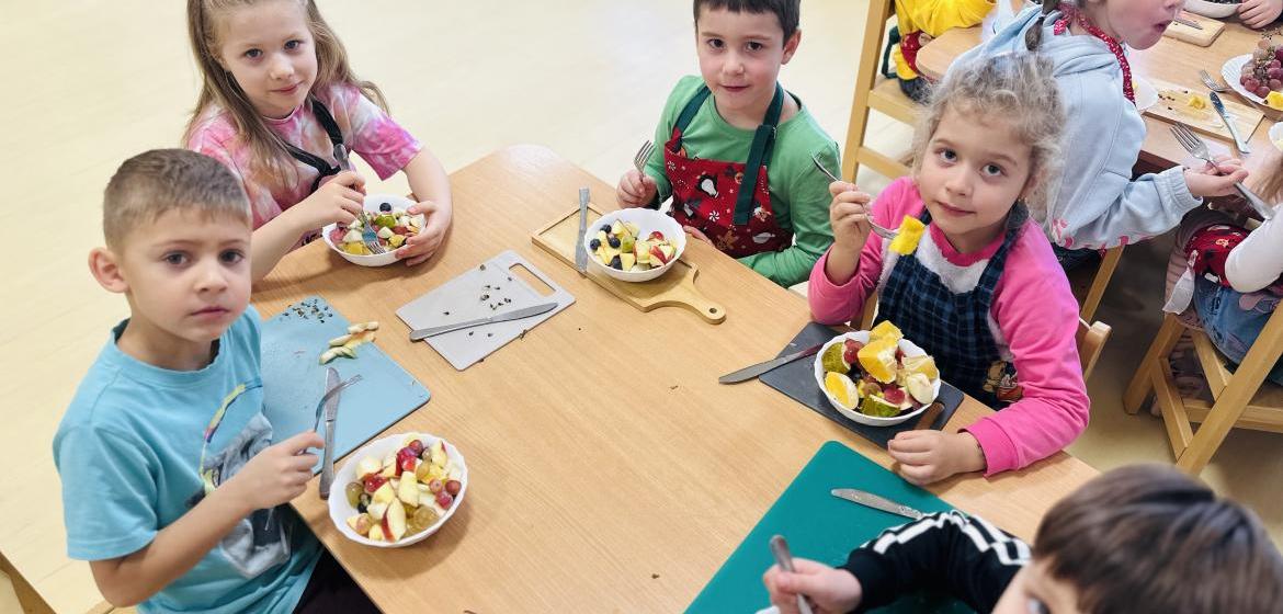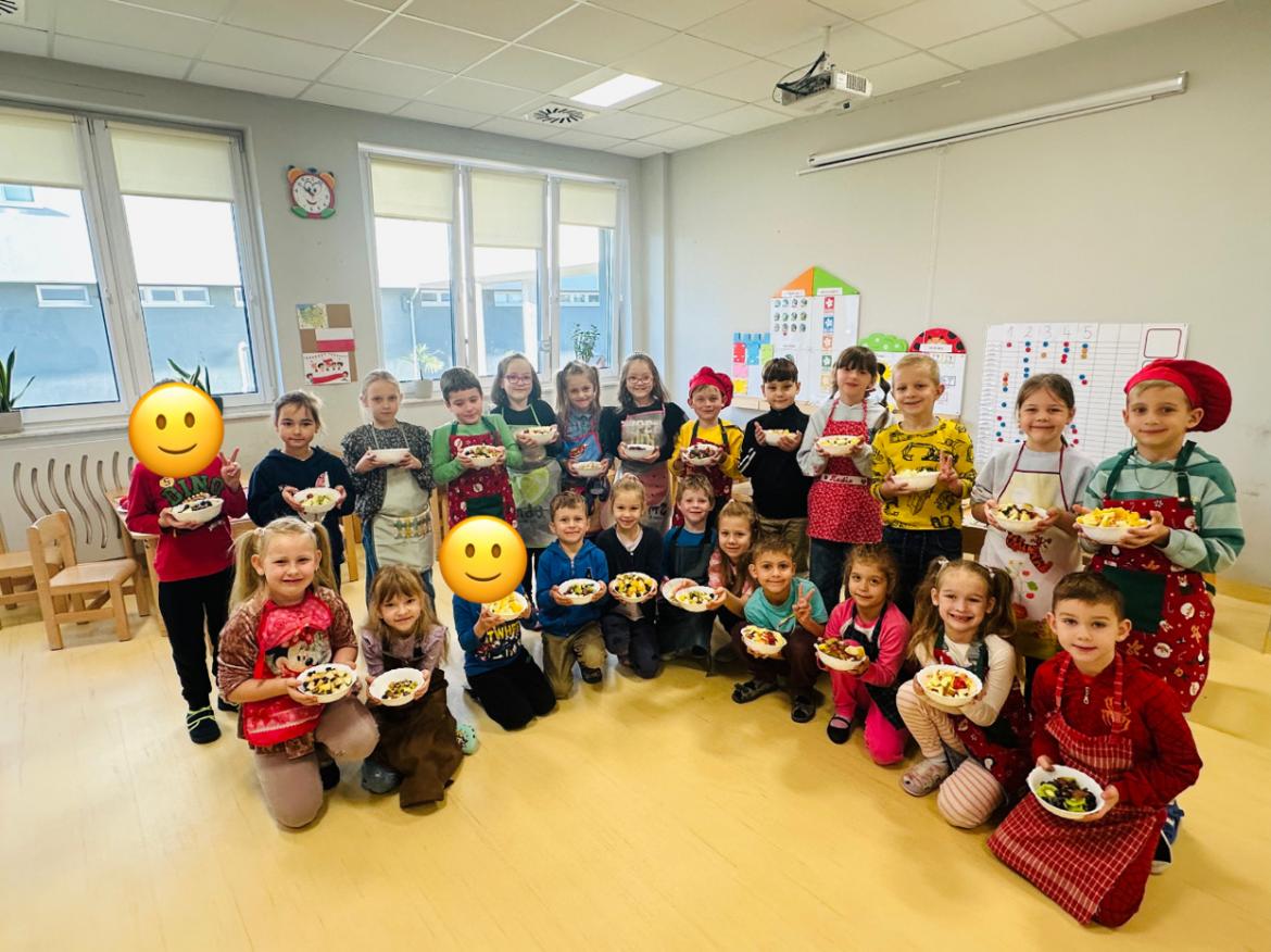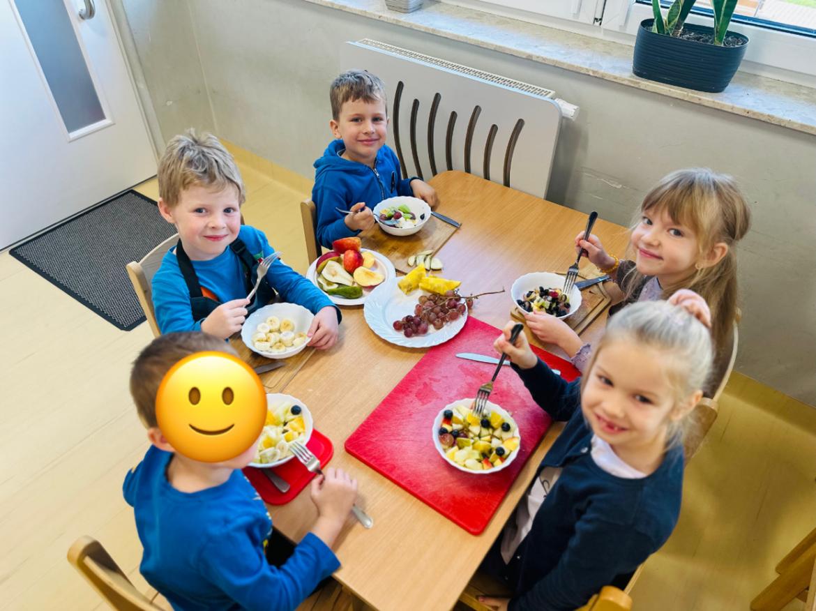Data i godzina wydarzenia pt., 07/11/2025 Rok szkolny 2024-2025 Z okazji Dnia Zdrowego Jedzenia nasze Liski przygotowały pyszną sałatkę owocową. Dzieci z zaangażowaniem kroiły owoce, mieszały składniki, a na końcu ze smakiem zjadły swoje kolorowe i zdrowe przysmaki! 🍎🍌🍓 Galeria × Poprzednie Dalej