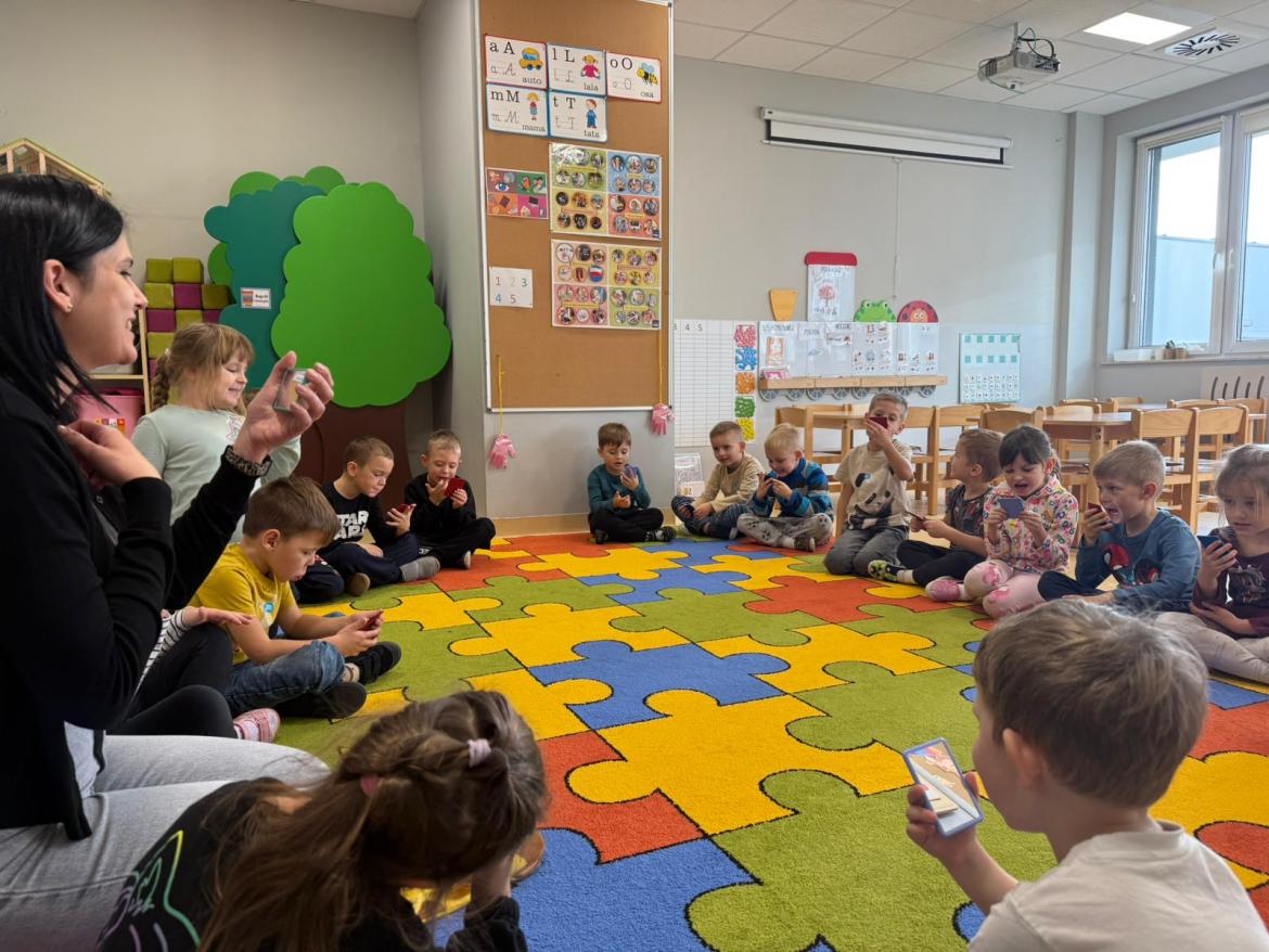 Dziś w naszej grupie odbyły się niezwykłe zajęcia, które poprowadziła mama Kornelii. Dzieci ćwiczyły buzię i język, a wszystko było połączone z ruchem i świetną zabawą! Były wesołe miny, lusterka i wygibasy.