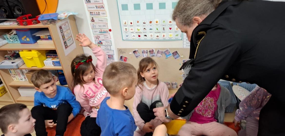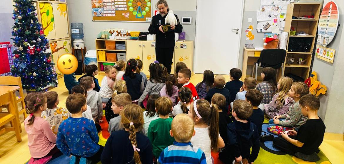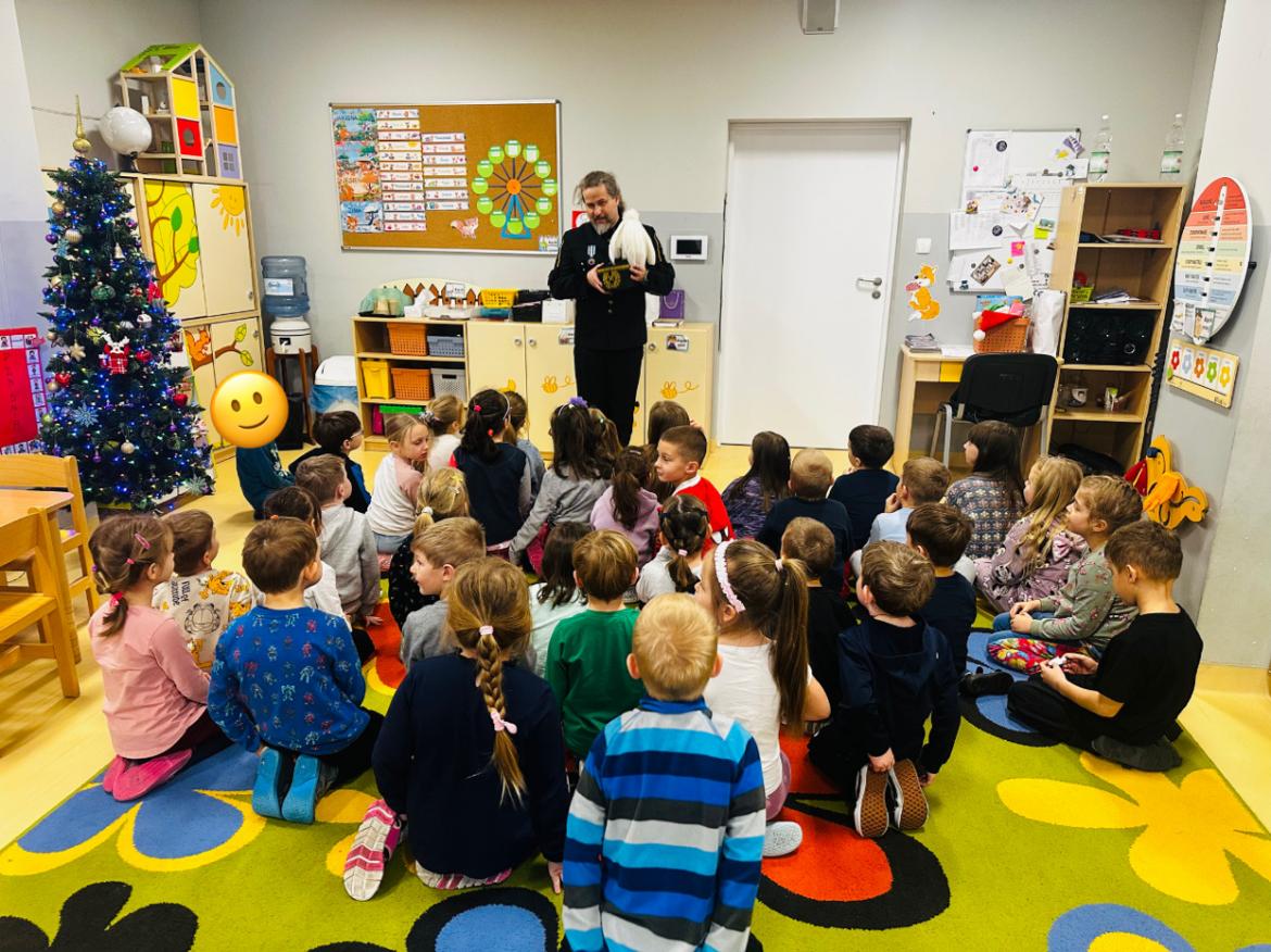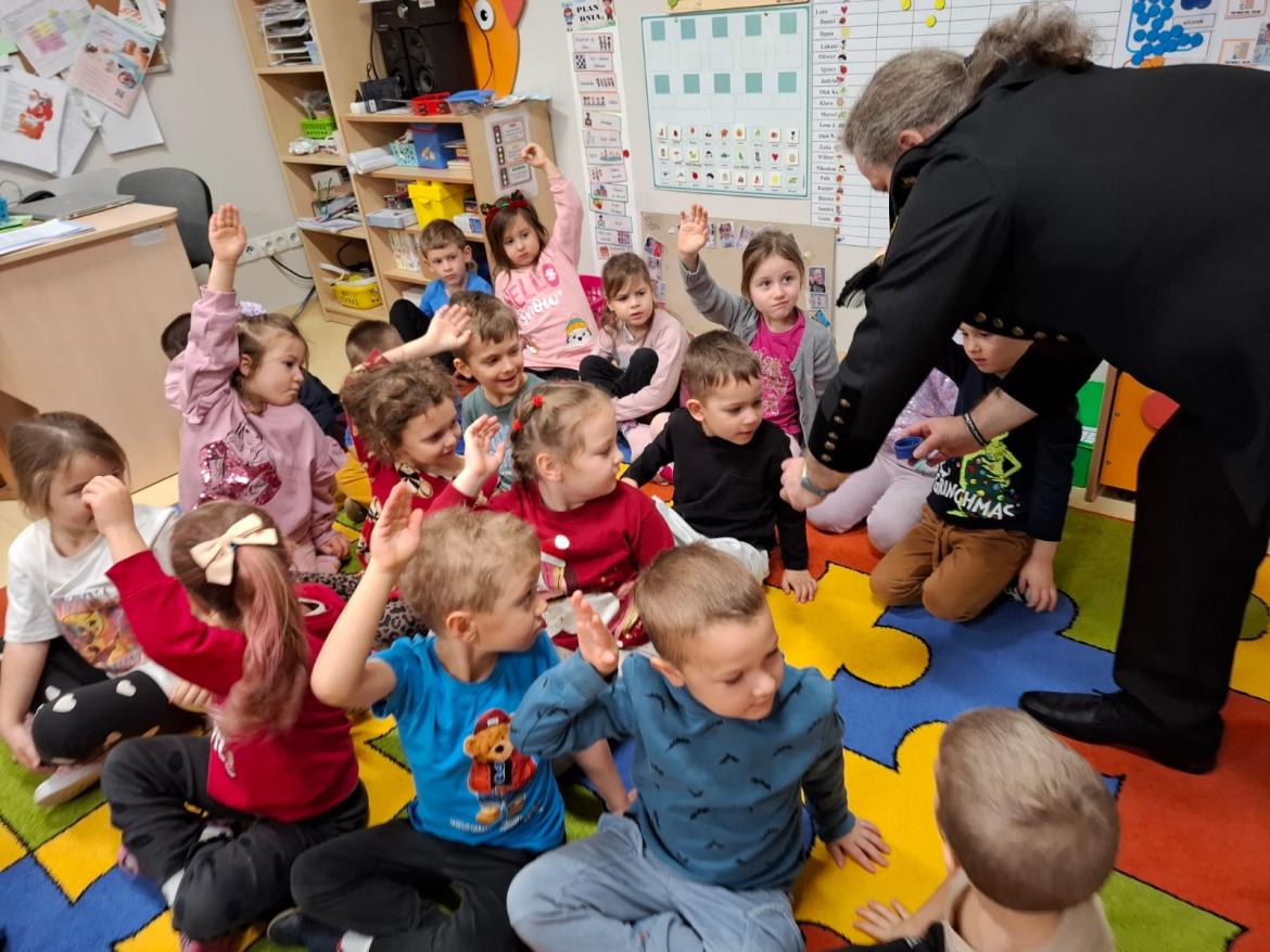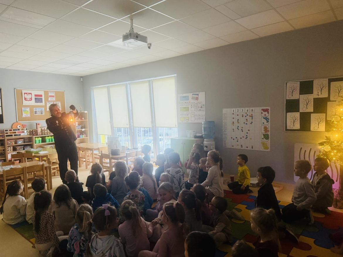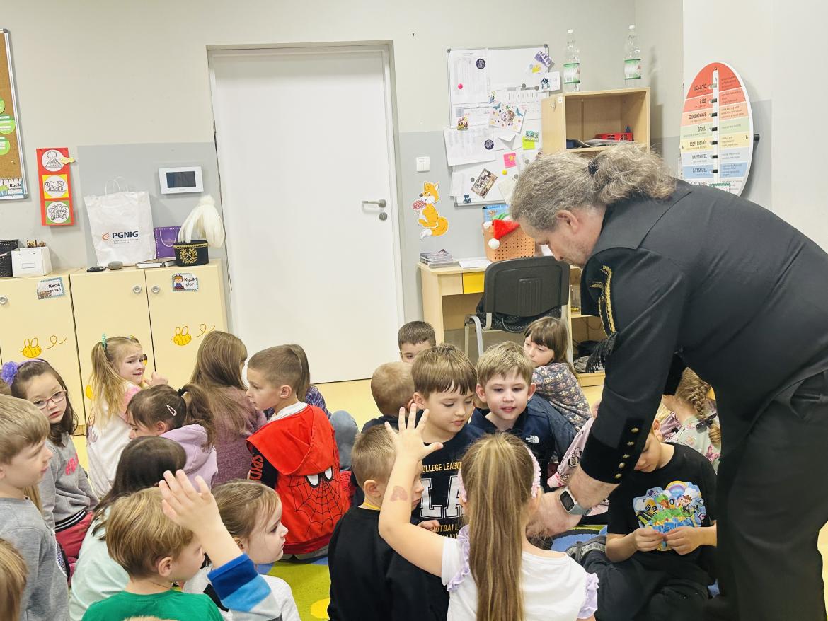 4 grudnia jest szczególnym dniem, w którym swoje święto obchodzą górnicy. W związku z tyM nasze przedszkole odwiedził górnik - pracownik Zielonogórskiego Oddziału PGNiG, który zapoznał dzieci z ciekawostkami o swojej pracy. Przedstawił dzieciom przepiękną historię o Świętej Barbarze – patronce górników. Przedszkolaki dowiedziały się, że górnicy wydobywają nie tylko węgiel, ale i ropę naftową i gaz ziemny. Miały okazję dowiedzieć się do czego wykorzystuje się ropę (np. do zabawek) oraz gaz ziemny. Podczas spotkania przedszkolaki miały także okazję zobaczyć górniczy strój galowy, przymierzyć kask, maskę gazową. Wraz z gościem wspólnie liczyły, ile guzików posiada jego mundur galowy. Największym zainteresowaniem cieszyła się górnicza czapka zwana – czako, na której widnieje godło górnicze (kupla) oraz pióropusz z piór kogucich. Każdy z przedszkolaków otrzymał własne czako. Górnik wyjaśnił, że kolor pióropusza jest uzależniony od rangi górnika: biały pióropusz – starsi inżynierowie i technicy, zielony – dyrektorzy kopalni, czarny pióropusz – zwykli górnicy, natomiast czerwony – członkowie orkiestry górniczej.