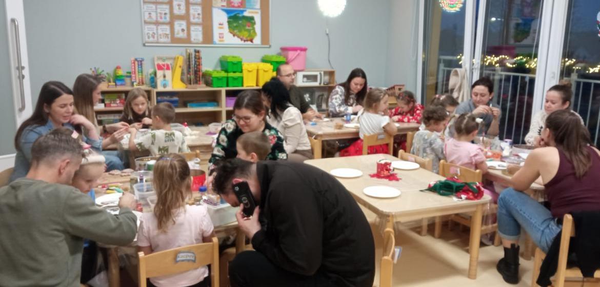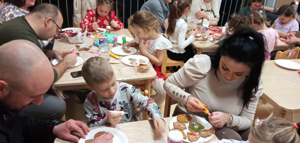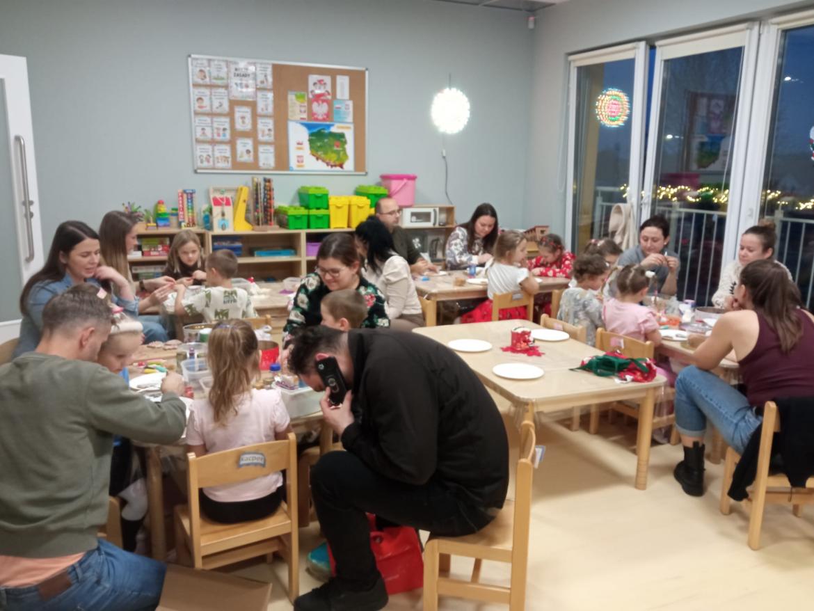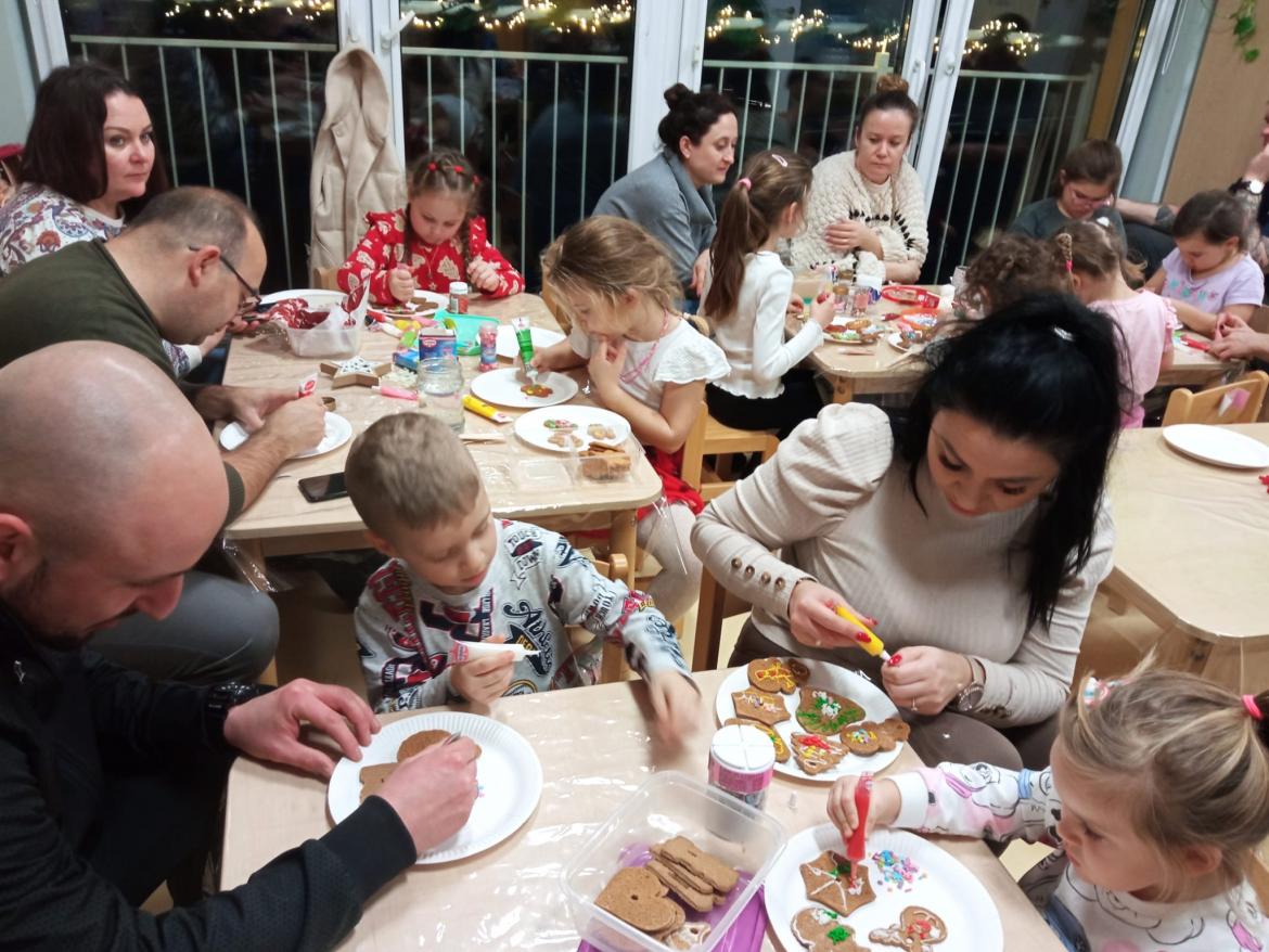 Przy dźwiękach kolęd rodzice z dziećmi przystąpiły do dekoracji pierniczków wg własnych pomysłów.