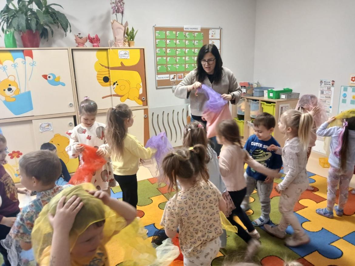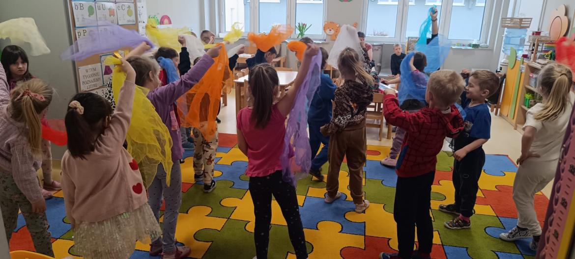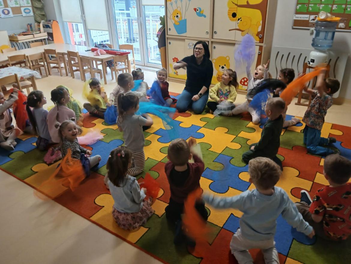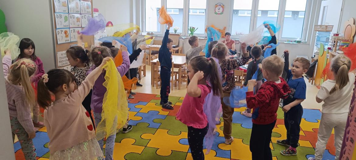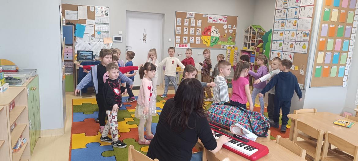 Dzieci miały okazję świetnie się bawić przy dźwiękach muzyki. Było dużo radości, ciekawości i aktywnego udziału dzieci.