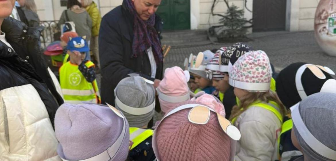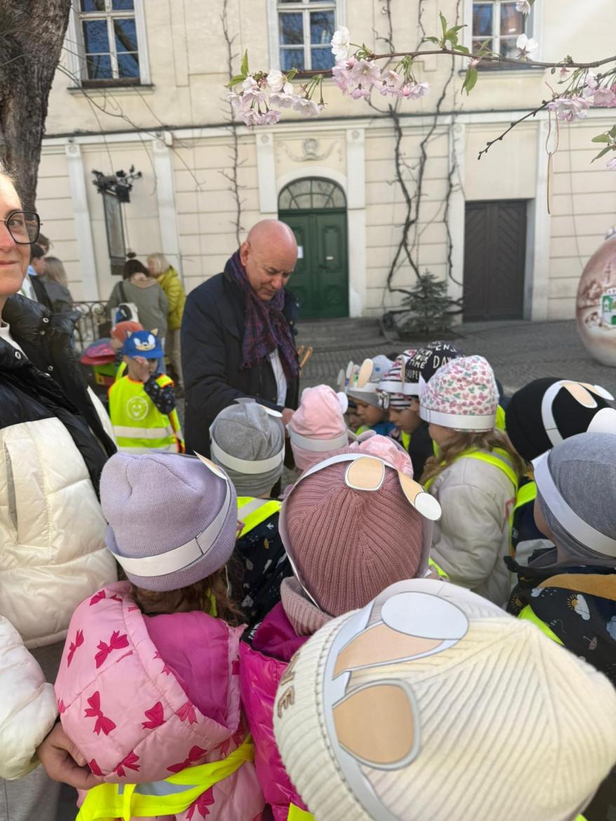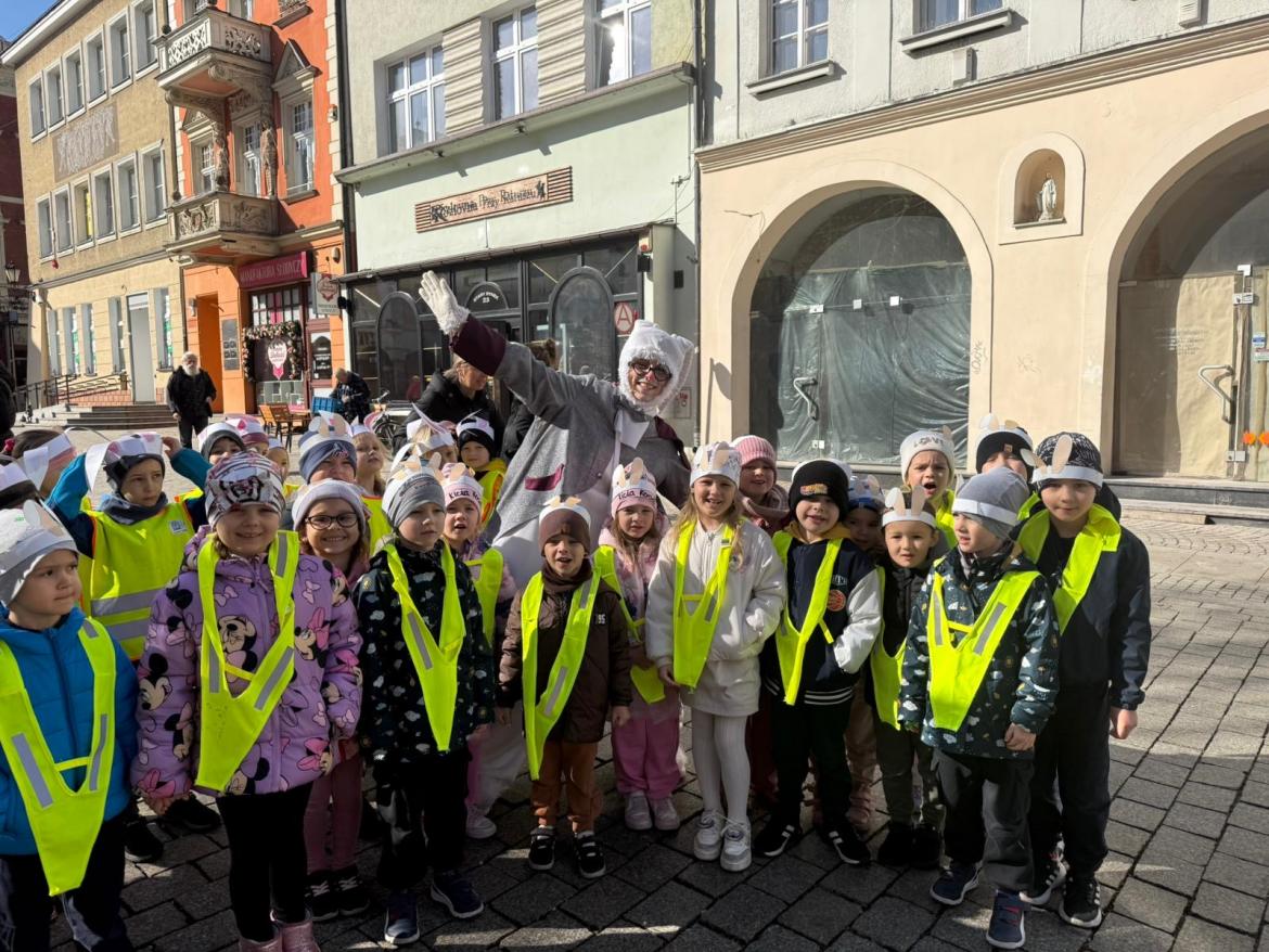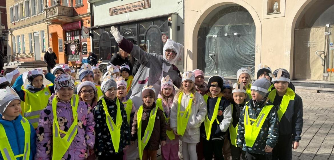 Grupa „Sówki” wzięła udział w radosnej zabawie pt. „Poszukiwanie wielkanocnego zajączka”, która odbyła się na deptaku. Dzieci z ogromnym zaangażowaniem wykonywały przygotowane zadania, rozwiązywały zagadki oraz podążały za wskazówkami ukrytymi w różnych miejscach.
